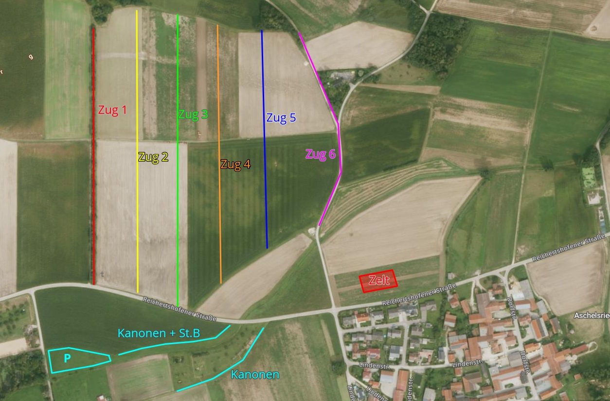 - Flächenbrand (alle 1. Schützen der Züge starten gleichzeitig zum Reihenfeuer)